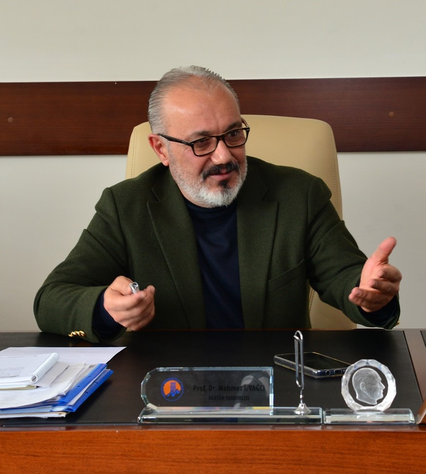 Prof. Dr. Mehmet İsmail Yağcı: Mersin Üniversitesi’nin, Mersin’de veya herhangi bir kent içerisindeki herhangi bir üniversitenin ne rolü var? diye tartışılır ve genellikle de eleştirel yaklaşılır üniversitelere. Çünkü üniversiteler en fazla eleştiriyi kabul eden, eleştirel düşüncenin en yaygın kabul gördüğü kurumlar oldukları için insanlar da üniversiteleri, hep kent içerisindeki rolü üzerinden eleştirirler. Ve genellikle de bu eleştiriler “Katkı vermiyorsunuz” şeklinde olumsuz olur.  Mersin Üniversitesinin olmadığını var sayalım. O zaman Mersin Üniversitesinin kente sağladığı katkıları kavrayabilir, hesabını yapabilirsiniz. Yani bir şeyin varlığını, katkılarını, o kurumun hiç var olmadığı durumla, var olduğun durumun karşılaştırmasıyla mümkün olabilir. Bundan 32 yıl önce, Mersin Üniversitesi yoktu. Ama Mersin Üniversitesi var olsun diye birçok kurum, kişi Mersin’de ciddi bir lobi faaliyeti yaparak Mersin Üniversitesinin kuruluşuna ön ayak oldular. Mersin Üniversitesi, kente 32 yıl süre boyunca müthiş bir katkı verdi. Bunun farkında değiliz çünkü doğal yaşam içinde, insanların geliştiği, evrildiği gibi kurumlar, kentler de evriliyorlar. Biz Mersin Üniversitesi olarak koskoca Mersin kentinin bir organı olmuş oluyoruz ve bu organ da beyin esasında. Yani Mersin kenti canlı bir kent, bir organizma ‘yaşayan bir kent’, bu canlı kentin beyni olan bir kurumuz.