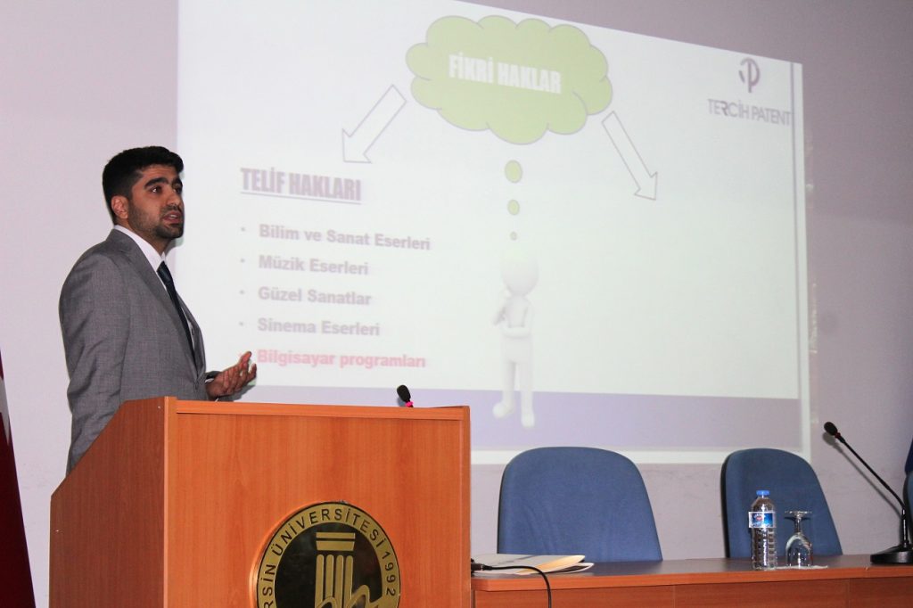 Tercih Patent A.Ş. çalışanı Süleyman Hanlı’nın konuşmacı olduğu etkinlik, Prof. Dr. Uğur Oral Kültür Merkezi’nde Rektör Yardımcımız Prof. Dr. Ahmet Hakan Öztürk, Su Ürünleri Fakültesi Dekanı ve Mersin TTO Akademik Birim Sorumlusu Prof. Dr. M. Tahir Alp, Mersin TTO çalışanları ve Tercih Patent A.Ş’den Mahmut Kasap, Ahmet Demiroğlu ve Veysel Karakaş ile öğretim üyeleri ve öğrencilerin katılımıyla gerçekleştirildi.